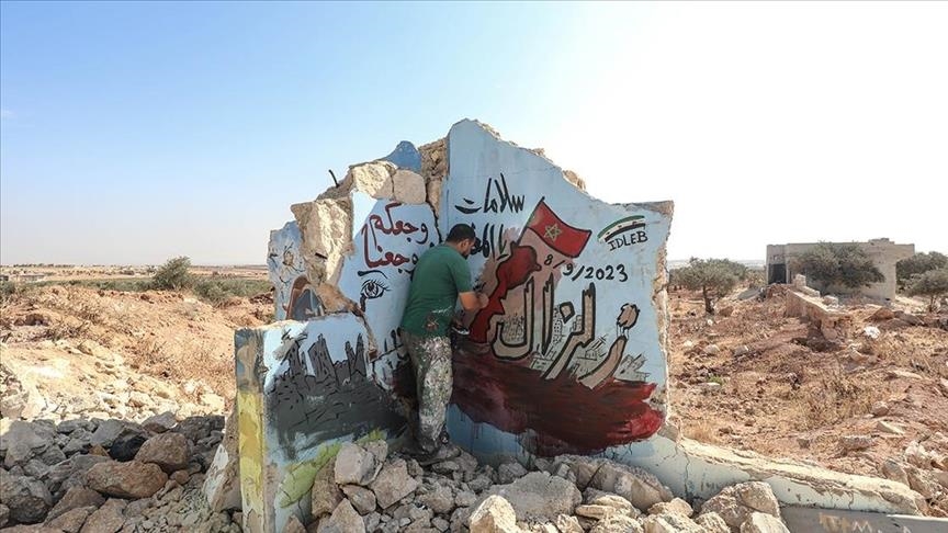 وفي حديثه للأناضول، قال رسّام الغرافيتي السوري إنهم شعروا في إدلب بحزن كبير جراء ما حلّ بالشعب المغربي بسبب الزلزال.