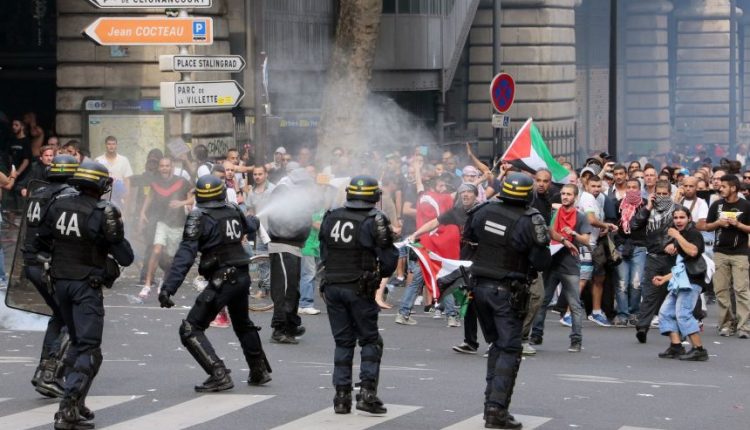 كما رفع المحتجون لافتات كتب على بعضها “إسرائيل مجرمة”، ورفعوا الأعلام الفلسطينية، واستخدمت قوات الأمن الفرنسية الغاز المسيل للدموع ومدافع المياه لتفريق المتظاهرين.