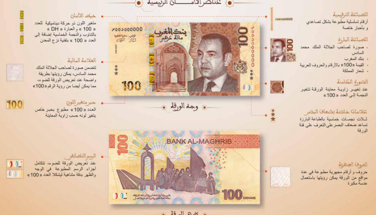 طرح بنـك المغــرب للتـداول ورقـة بنكيـة جديـدة مـن فئـة 100 درهـم وقطعـا نقديـة مـن فئـة 10 سـنتيمات و20 سـنتيما ونصـف درهـم و1 درهم و5 دراهم و10 دراهم، ابتداء من يومه، الجمعة 24 نونبر 2023.، وذلك فــي إطار إصداره للسلسلة الجديدة الأوراق البنكية والقطع النقدية.